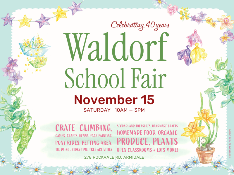 Celebrate 40 years of Steiner education in Armidale at The Waldorf School Fair! This much-loved community event is open to everyone and offers a day of joyful connection, creativity, and discovery. 🎶Enjoy free entertainment, explore open classrooms, and experience the warmth of our school community. There is plenty of fun for all ages! 🏓Including our much loved crate climbing, games alley, crafts, henna, face-painting, a 🐇petting area with pony rides for the young ones, handmade goods, secondhand treasures, 🥕organic produce, […]