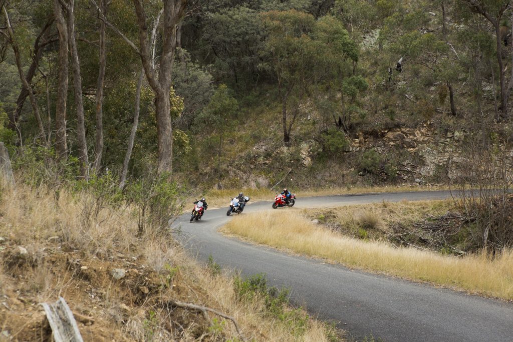 The Oxley drops us off the New England highlands, leading us first through Walcha, at around 1100m, then gradually descends in a series of epic twists and turns that take us out of the area. At first the three of us travel in synchronised low-level flying formation. We wind our way through kilometres of smoothly paved twisties, remembering why this road is the object of so many riders’ infatuations, and why this is an epic way to end, or even begin, a road trip to New England High Country.